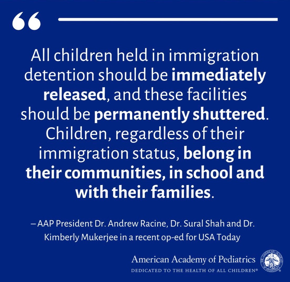 Conditions in these facilities compound harm and create additional medical risk. Public reports describe inadequate bedding, clothing, hygiene facilities, and access to food and clean water, along with unnecessary family separation. Of particular concern are the numerous reports of limited access to timely, appropriate medical care. The recent measles outbreak at the detention facility in Dilley, Texas – which apparently included critically ill infants without adequate medical evaluation – underscores the immediate preventable danger children face in these settings.