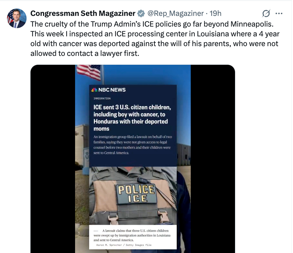 These are just three of many stories documented by the Children Thrive Action Network. Harm and trauma to children are taking place hourly in Minneapolis and other communities all across this country. These stories are symptoms of an enforcement strategy by ICE that has also expanded operations to schools, child care centers, churches, hospitals, and residential neighborhoods, which have long been places that have been off-limits or reasonably safe from federal law enforcement operations.
