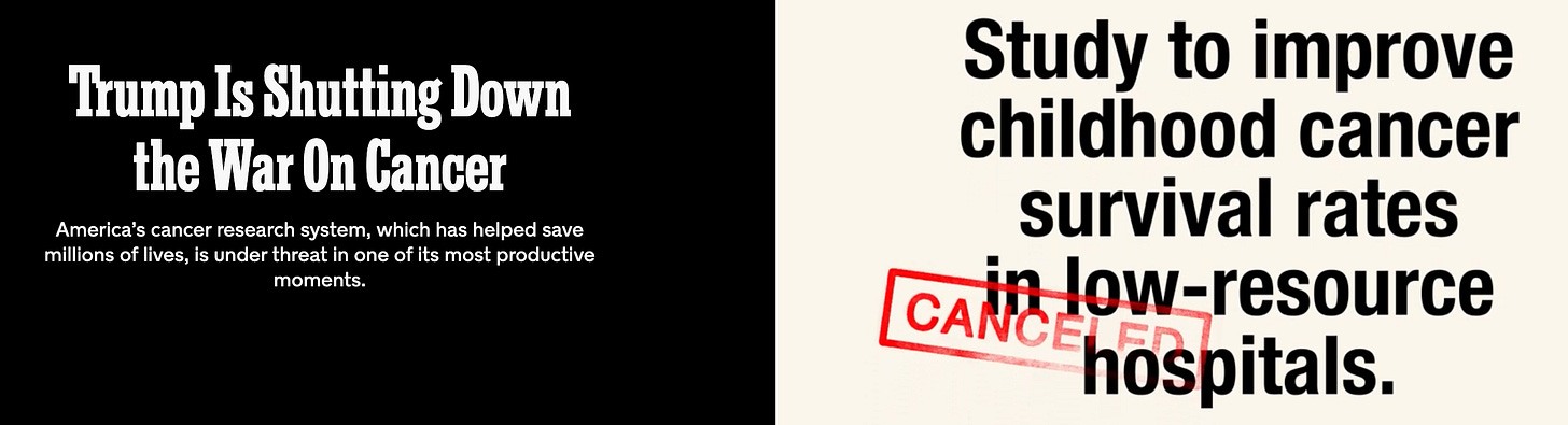 Source: Mahler, Jonathan (2025, Sept. 15). Trump is Shutting Down the War on Cancer. New York Times.